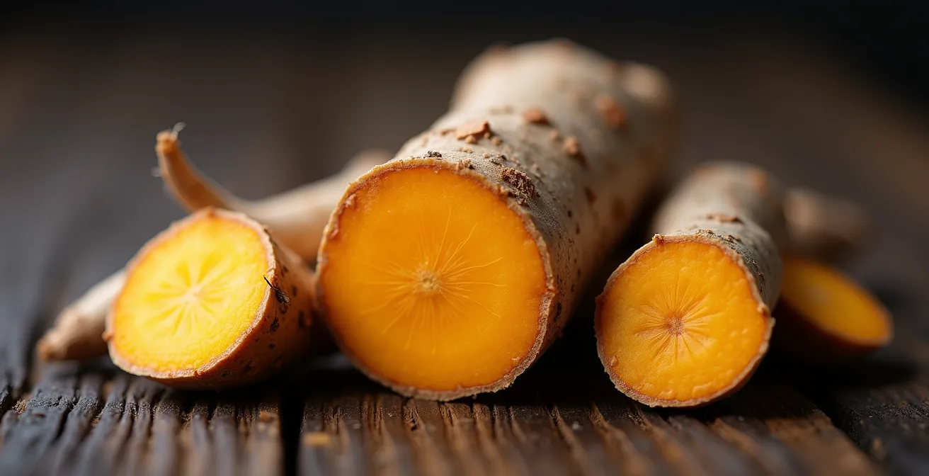 Contrairement à l’idée reçue, la partie la plus puissante du curcuma n’est pas le rhizome entier, mais sa « mère », le cœur bulbeux de la plante.
