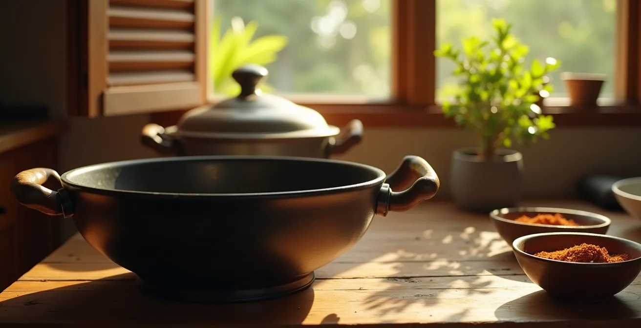 Pour un non-initié, une casserole en vaut une autre. Pour un cuisinier réunionnais, le choix de la marmite pour faire un cari n’est pas une question de préférence, mais une nécessité technique. La traditionnelle marmite créole, souvent en fonte d’aluminium, surpasse de loin ses homologues modernes en inox pour une raison physique simple : la conductivité et l’inertie thermiques. C’est l’exemple parfait de la façon dont un objet façonne un plat.